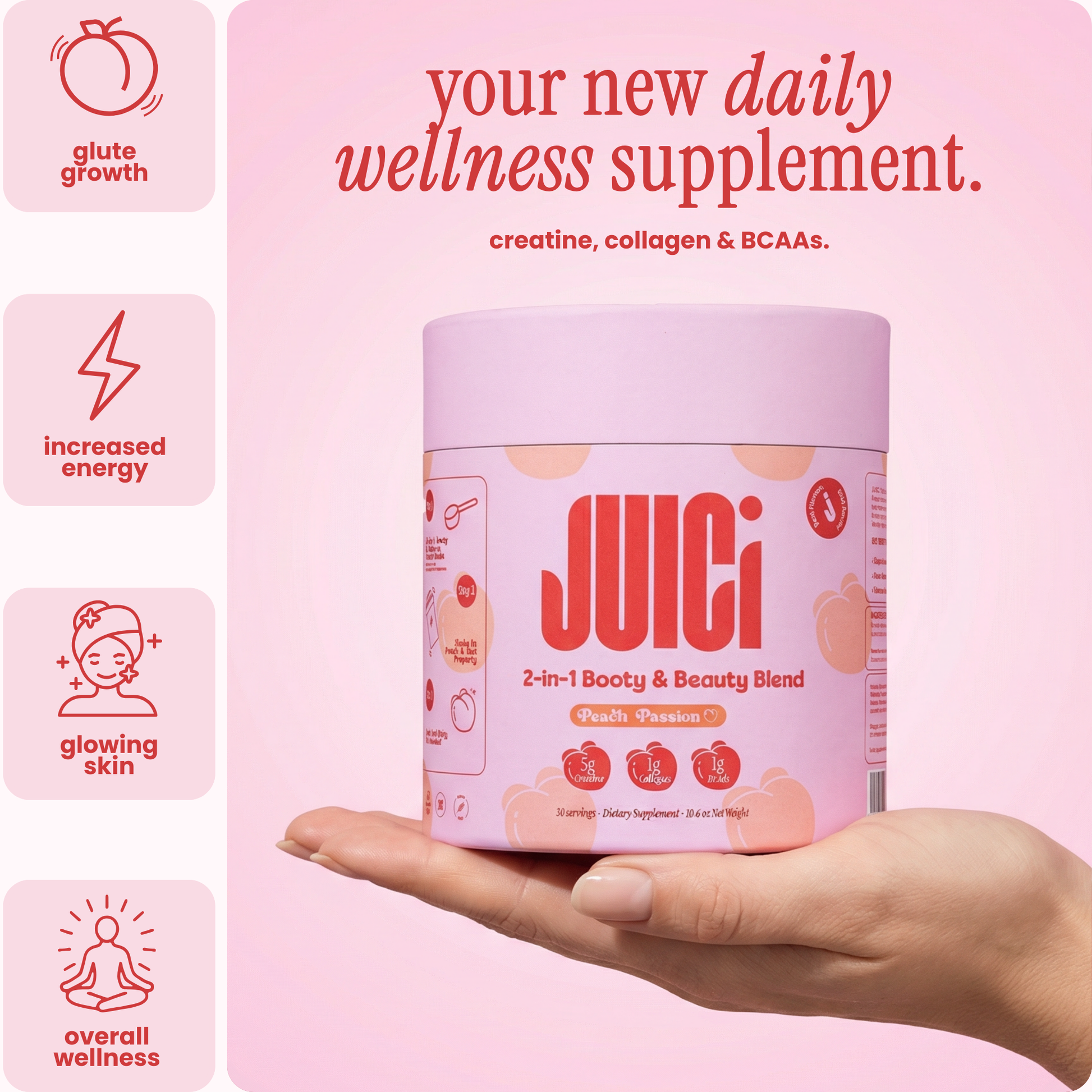 the blend has a light, easy-to-mix texture that fits smoothly into your daily routine. it offers a convenient way to include these amino acids alongside your usual training or wellness habits and pairs well with the rest of your JUICi products.